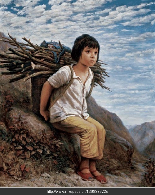 砍柴的孩子,在路边休息,也许太重了,也许……,在农村,砍柴是必修的功课
