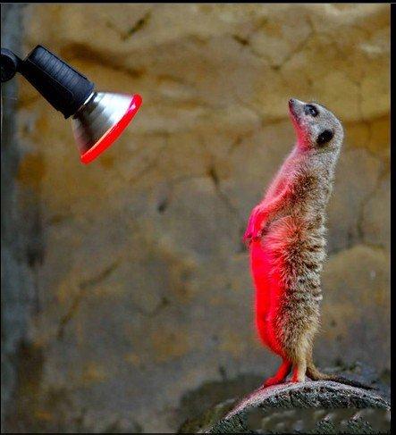 2003年7月3日,澳大利亞悉尼塔龍加動物園的一隻海島貓鼬,正在發光的燈下取暖。當時澳大利亞天氣十分反常,氣溫很低,動物園管理員不得不采取各種措施爲動物保暖。