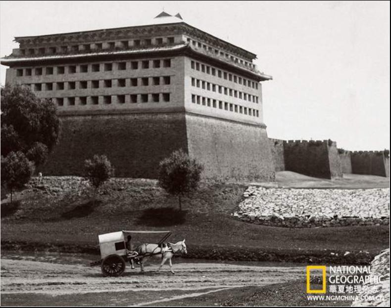 21世纪初期,西方读者放眼中国,看到的是未来大势所趋,而在百年之前,他们看到的却是满目龙钟老态。这座箭楼原本连在北京内城的城墙上,早年清帝从紫禁城去往天坛,便会穿过这个门洞。楼顶有琉璃瓦,它身后有正阳门的正楼,高九丈九尺(旧制),古代中国以“九”为象征尊贵之数。